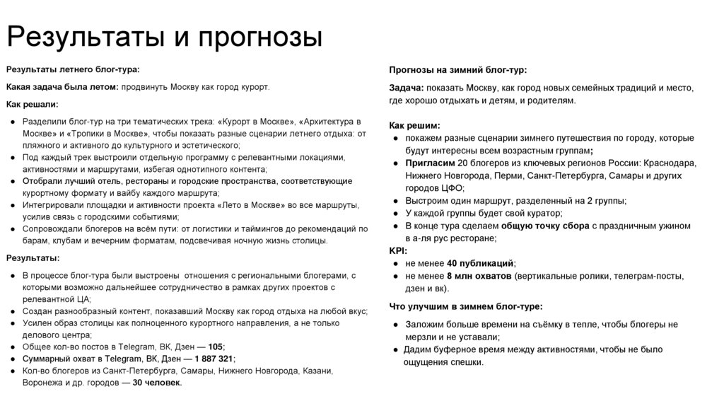 Результаты и прогнозыРезультаты летнего блог-тура: