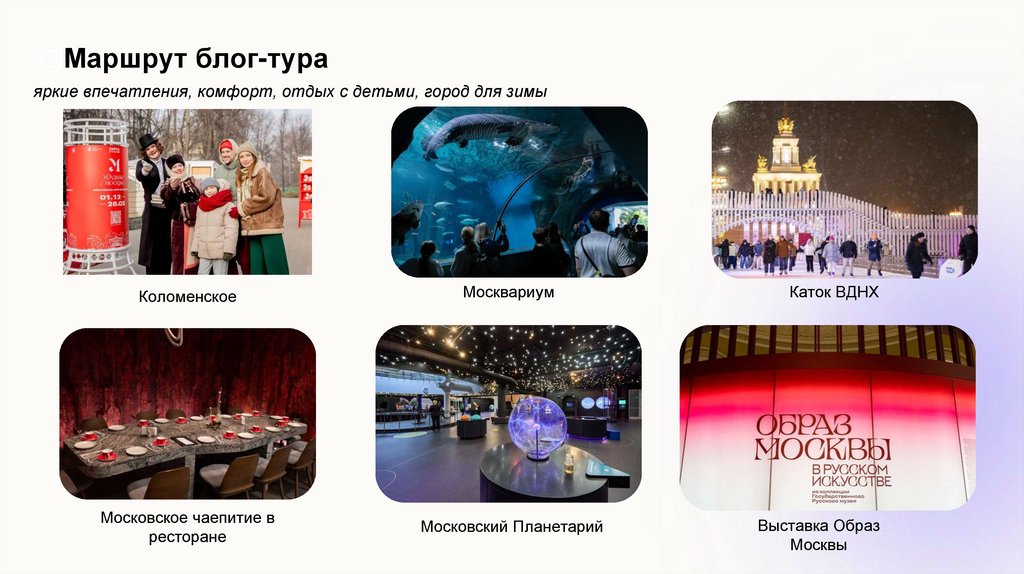 ● Разделили блог-тур на три тематических трека: «Курорт в Москве», «Архитектура в