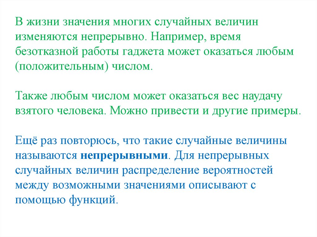 Случайные величины могут быть непрерывными.Непрерывная случайная величина может