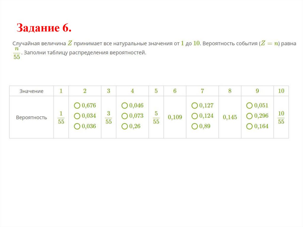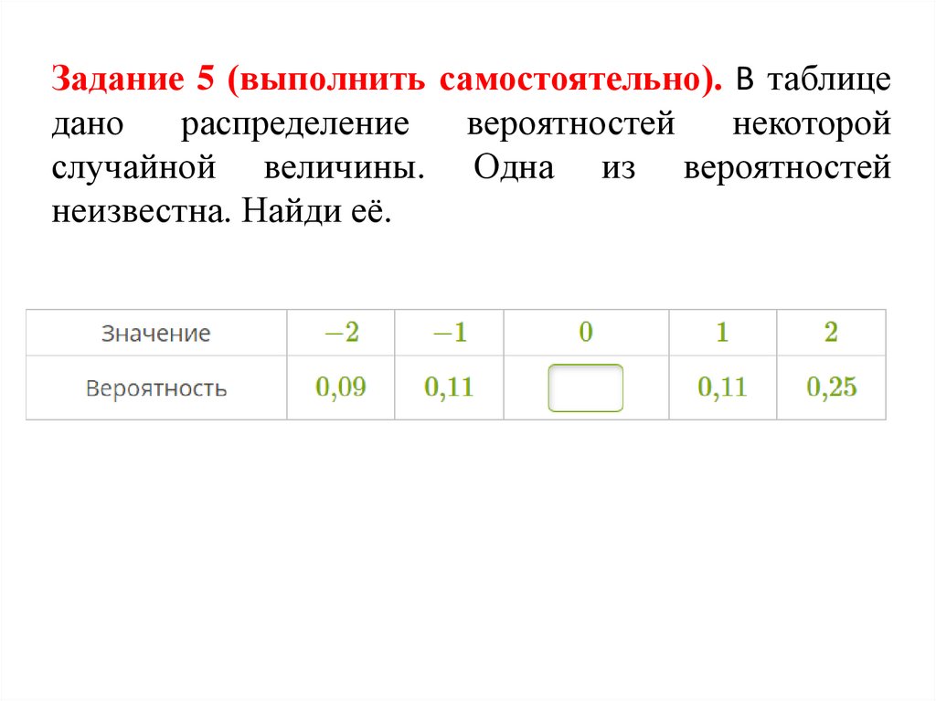 Задание 4. В таблице дано распределениевероятностей некоторой случайной величины. Одна