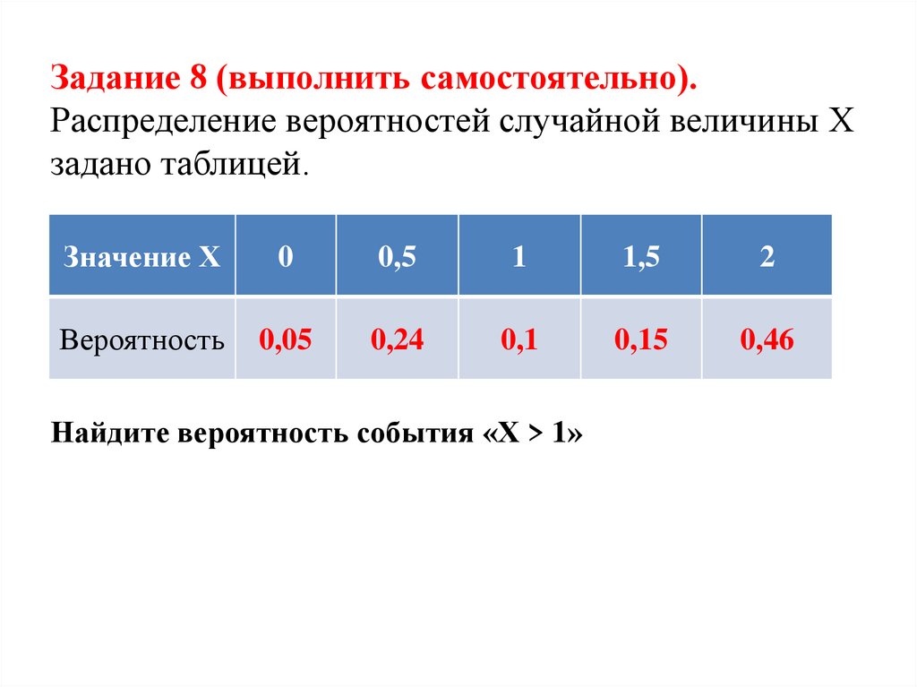 Задание 8 (выполнить самостоятельно).Распределение вероятностей случайной величины Х