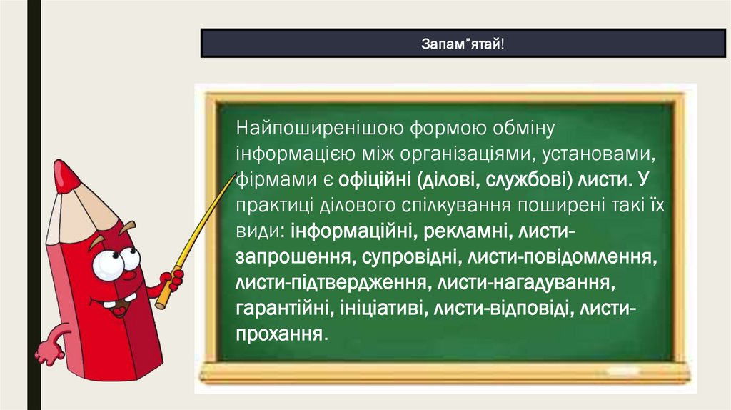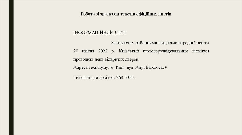 Робота зі зразками текстів офіційних листівІНФОРМАЦІЙНИЙ ЛИСТ