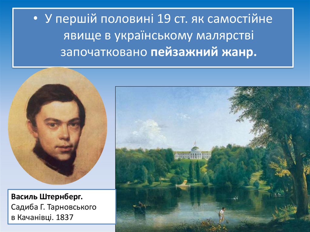 • У першій половині 19 ст. як самостійнеявище в українському малярстві