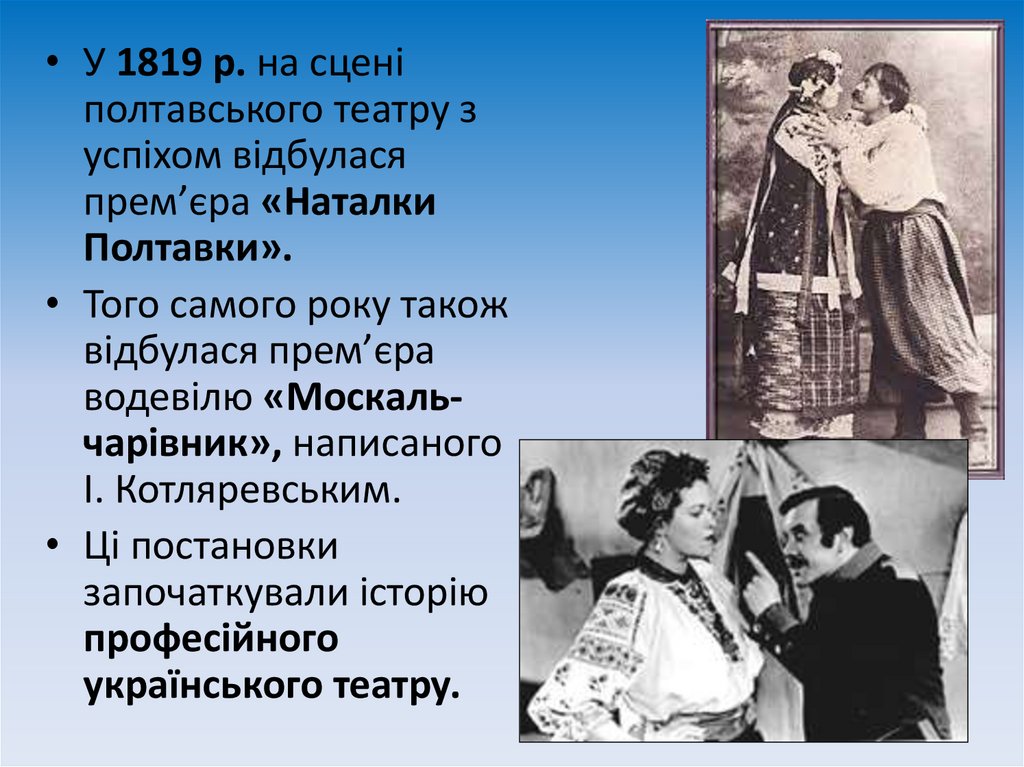 21. У 1818 р. театральна трупа Харкова переїхала до Полтави, де розпочав свою діяльність театр, керівником якого було призначено І.