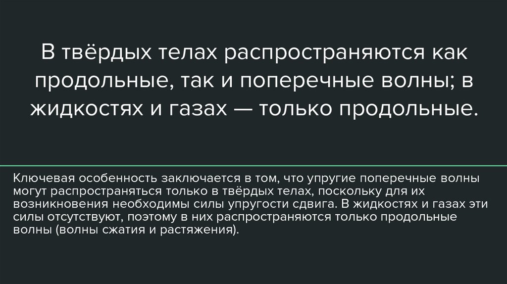 Ключевая особенность заключается в том, что упругие поперечные волны