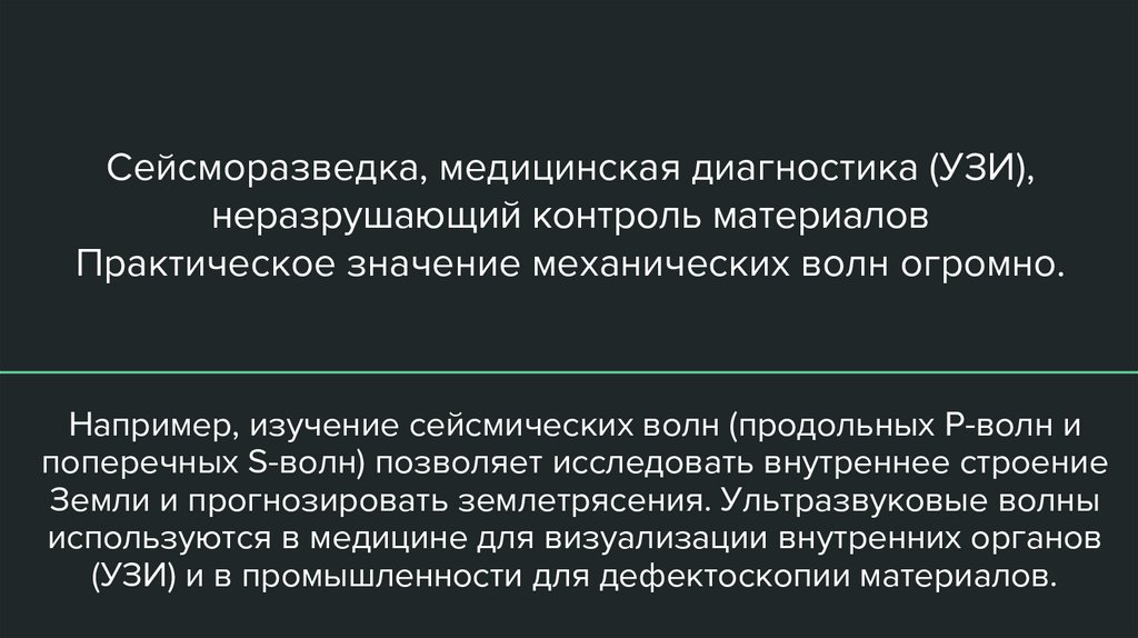 Сейсморазведка, медицинская диагностика (УЗИ),неразрушающий контроль материалов