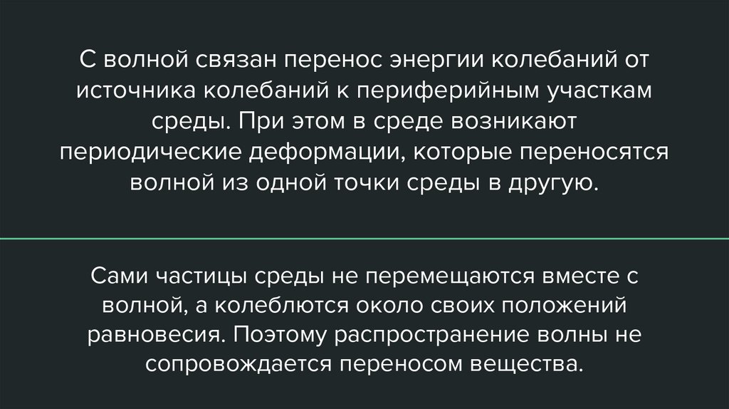 С волной связан перенос энергии колебаний отисточника колебаний к периферийным участкам