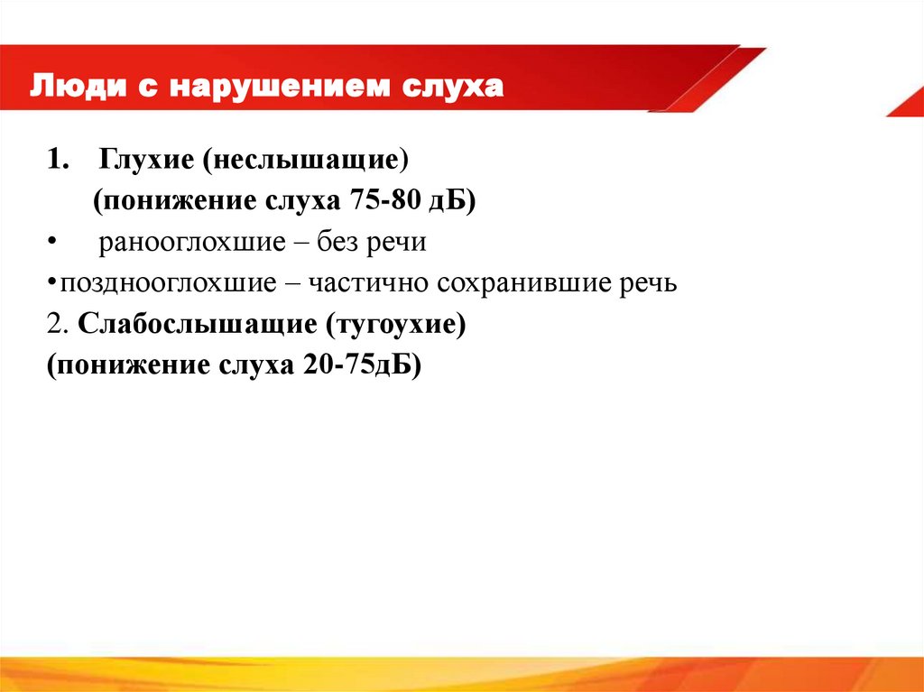 Люди с нарушением слуха1. Глухие (неслышащие)