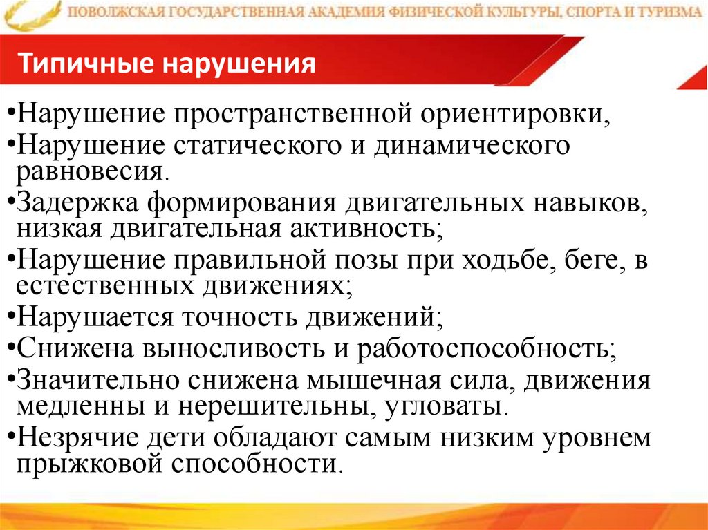 Нарушения в развитии двигательных способностей•нарушение координационных способностей - точности