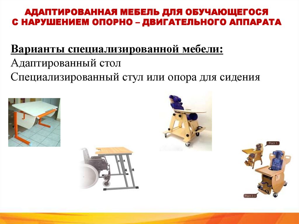 АДАПТИРОВАННАЯ МЕБЕЛЬ ДЛЯ ОБУЧАЮЩЕГОСЯС НАРУШЕНИЕМ ОПОРНО – ДВИГАТЕЛЬНОГО АППАРАТА