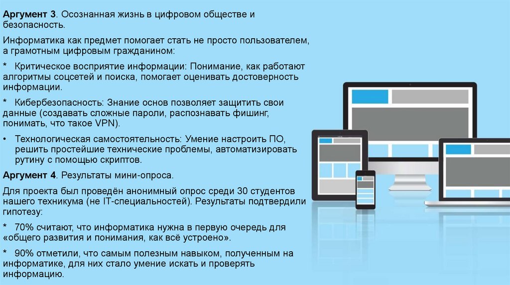 Аргумент 3. Осознанная жизнь в цифровом обществе ибезопасность.