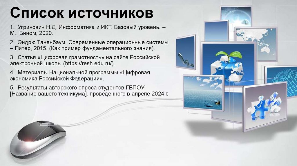 Список источников1. Угринович Н.Д. Информатика и ИКТ. Базовый уровень. –
