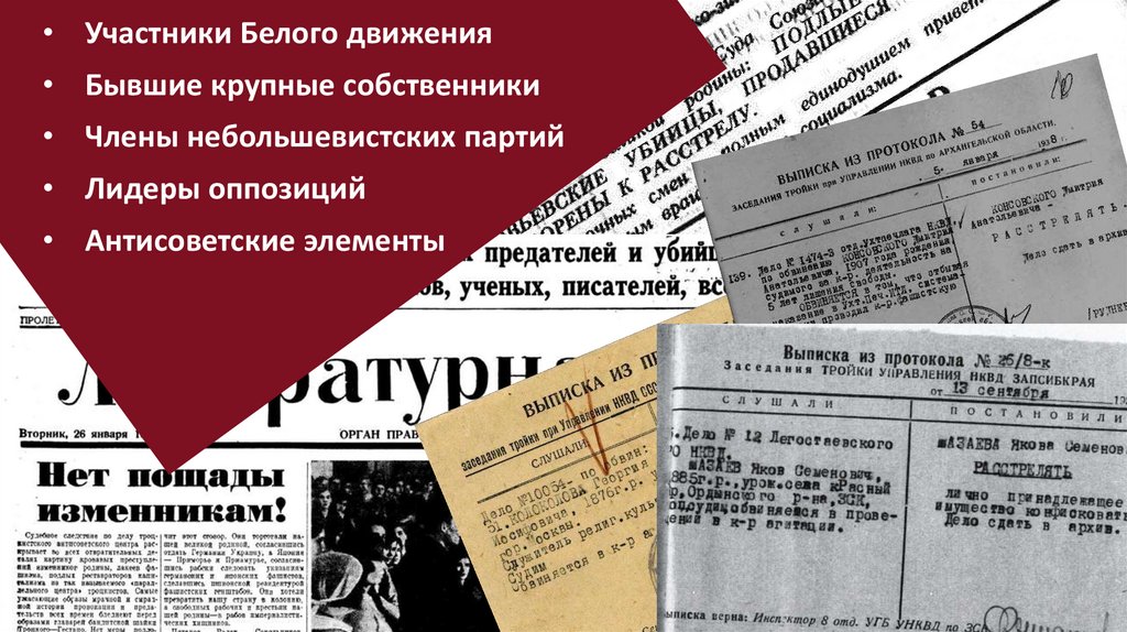 • Участники Белого движения• Бывшие крупные собственники
