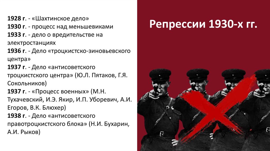 1928 г. - «Шахтинское дело»1930 г. - процесс над меньшевиками