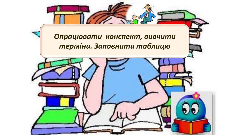 Опрацювати конспект, вивчититерміни. Заповнити таблицю