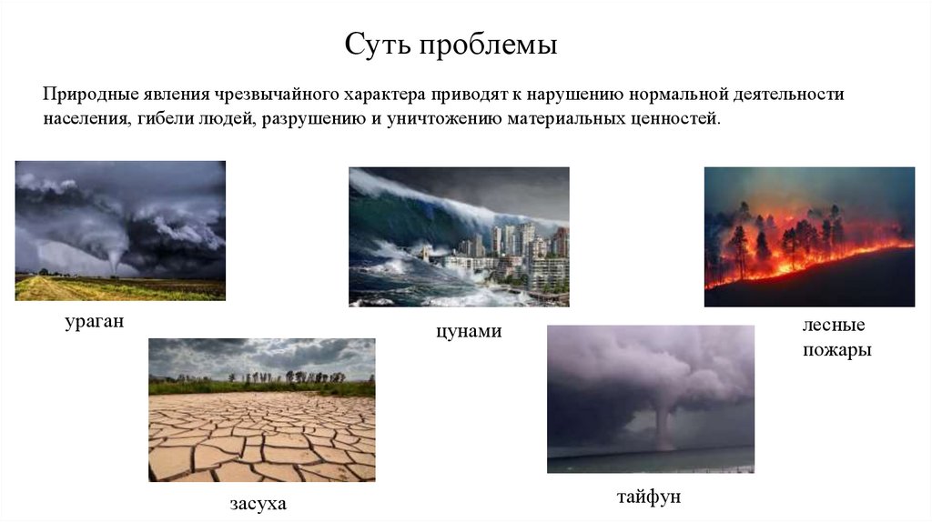 Суть проблемыПриродные явления чрезвычайного характера приводят к нарушению нормальной деятельности