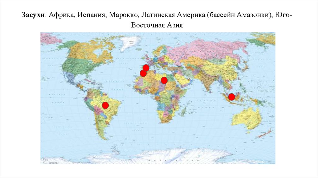 Засухи: Африка, Испания, Марокко, Латинская Америка (бассейн Амазонки), ЮгоВосточная Азия8.