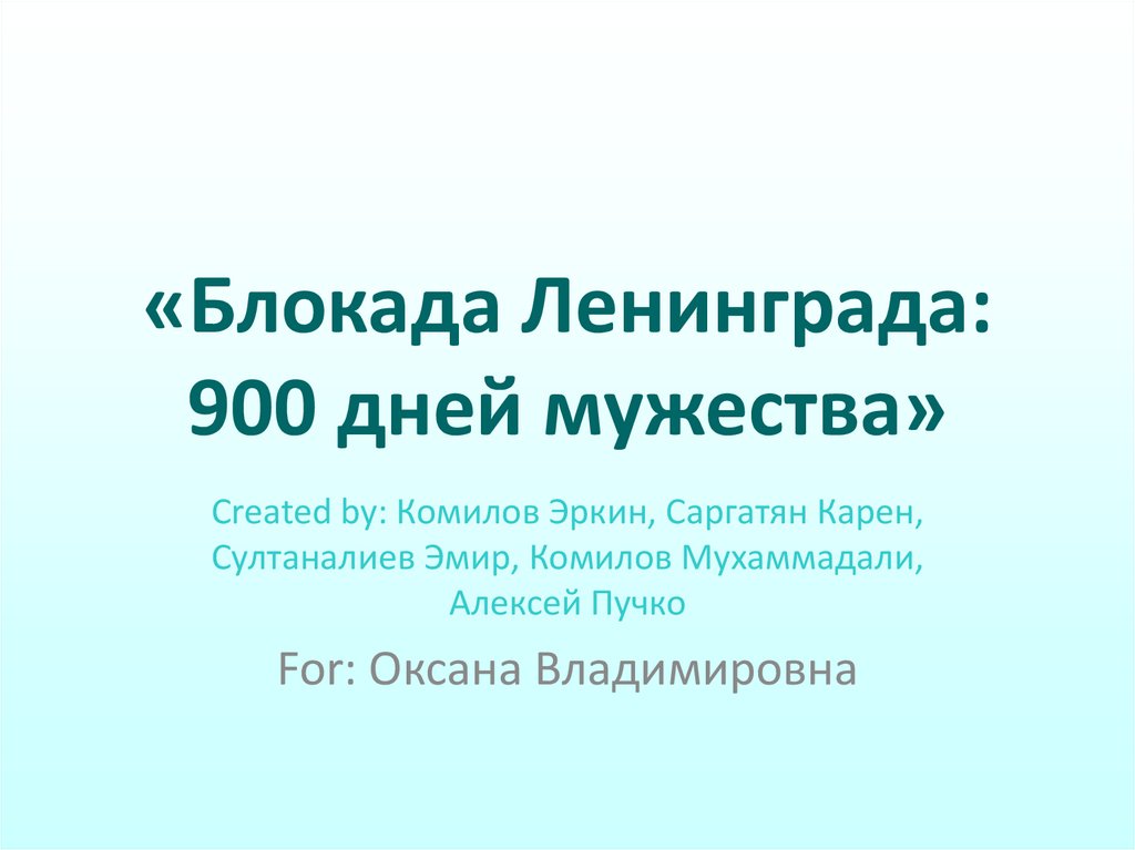 Блокада Ленинграда: 900 дней мужества◆ Название презентации: Блокада