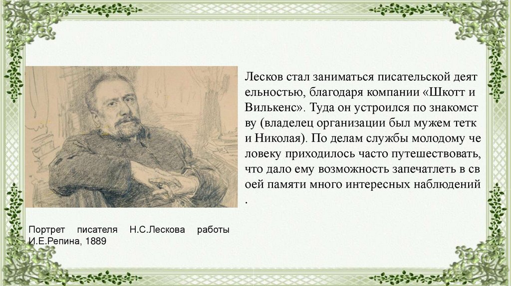 Лесков стал заниматься писательской деятельностью, благодаря компании «Шкотт и