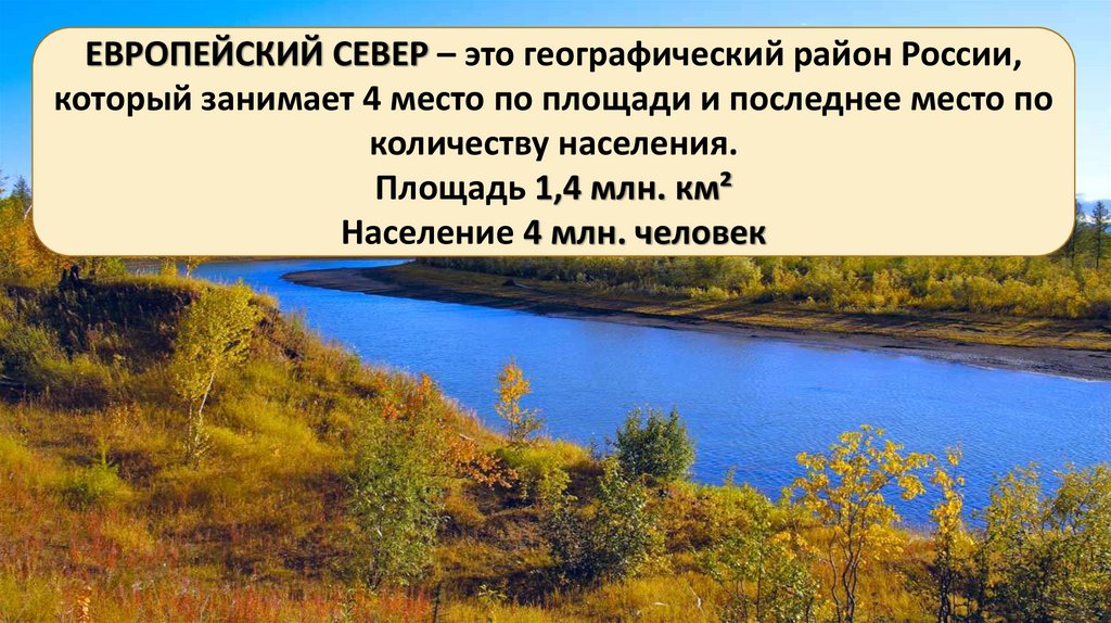ЕВРОПЕЙСКИЙ СЕВЕР – это географический район России,который занимает 4 место по площади и последнее место по
