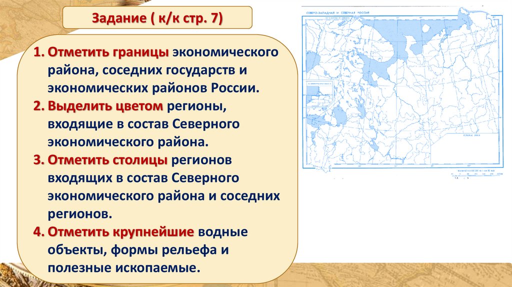 Задание ( к/к стр. 7)1. Отметить границы экономического