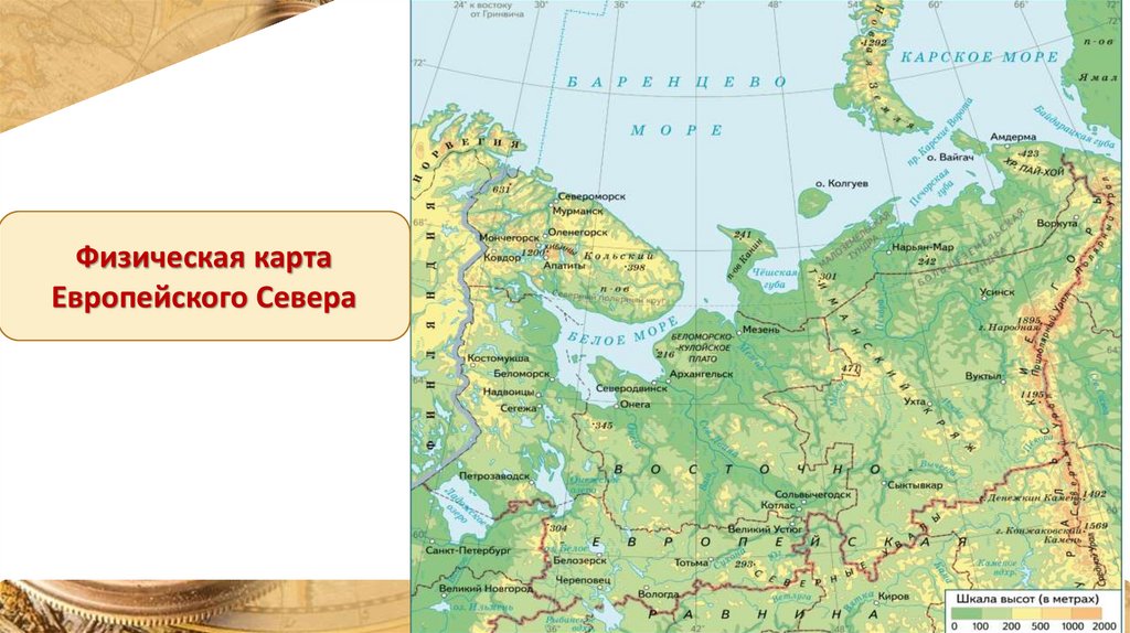 Физическая картаЕвропейского Севера