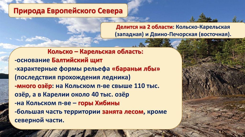 Природа Европейского СевераДелится на 2 области: Кольско-Карельская