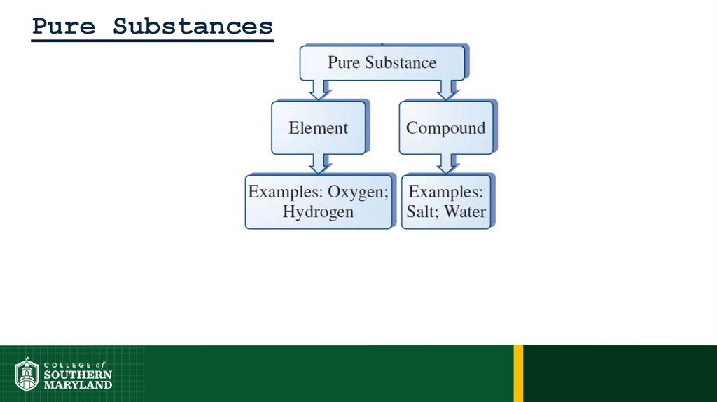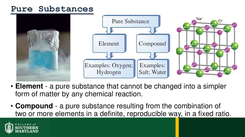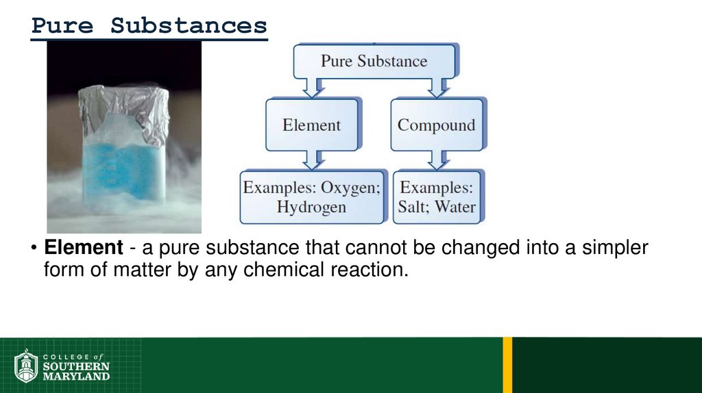 Pure Substances• Element - a pure substance that cannot be changed into a simpler
