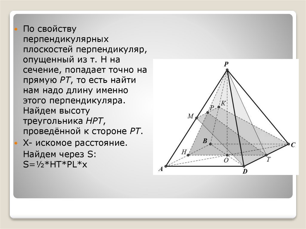 Определим положение перпендикуляра, который лежитв плоскости сечения. (Помним, что если прямая