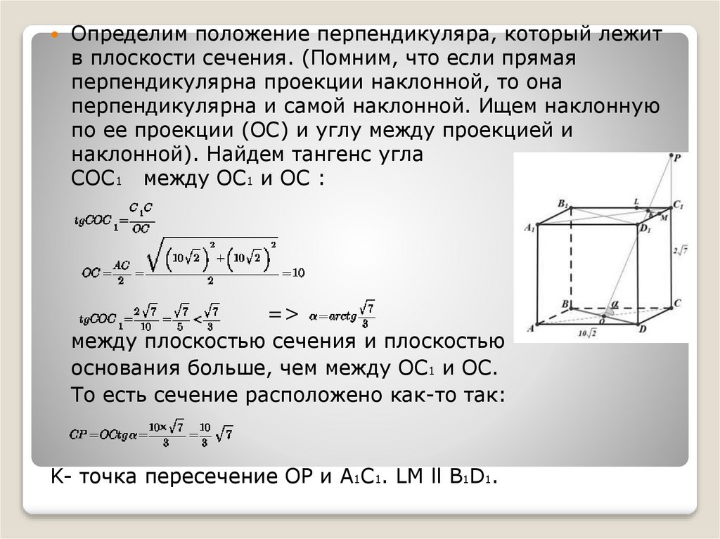 K- точка пересечение OP и A1C1. LM ll B1D1.