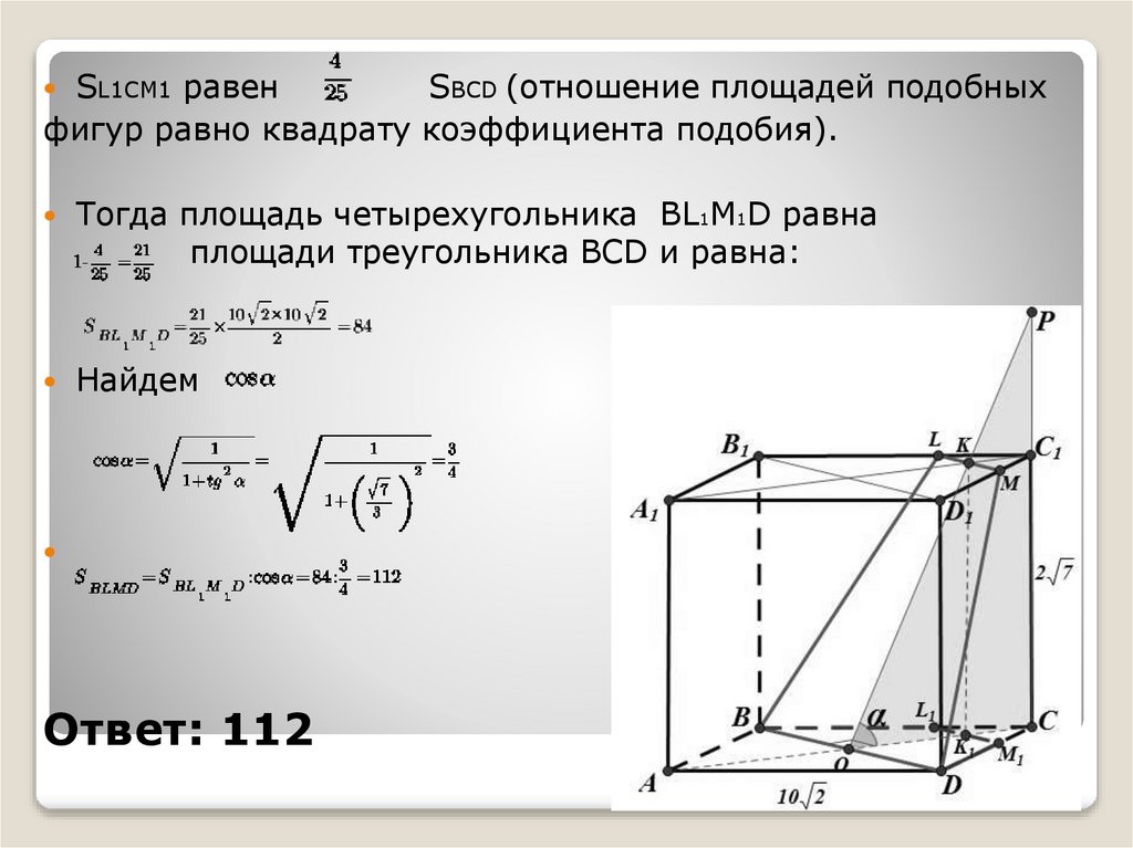 Изобразите сечение единичного кубаA…D1, проходящее через середины