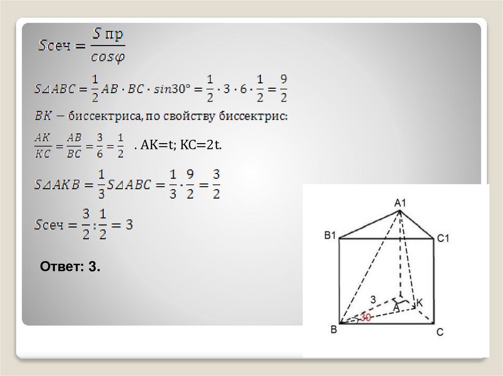 В прямой призмеABCA1B1C1 BKбиссектриса