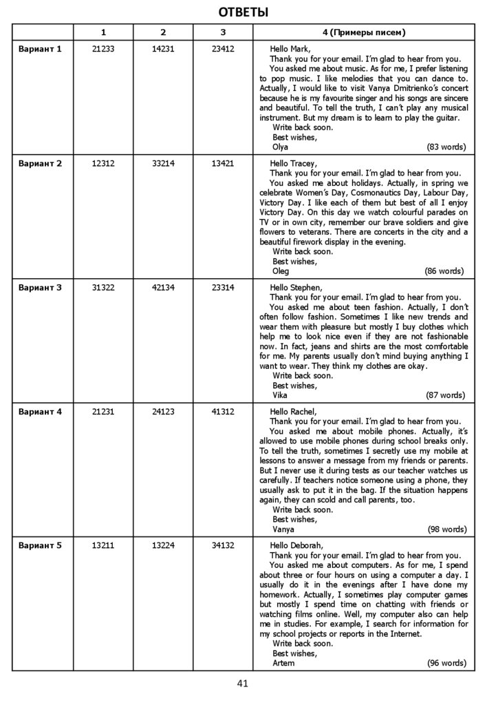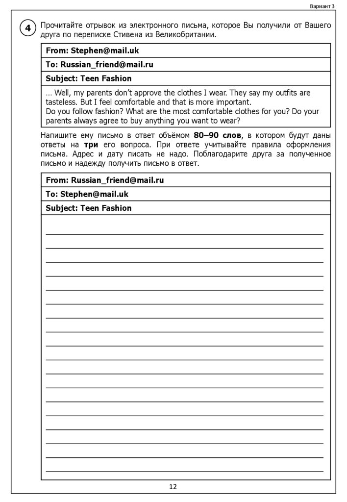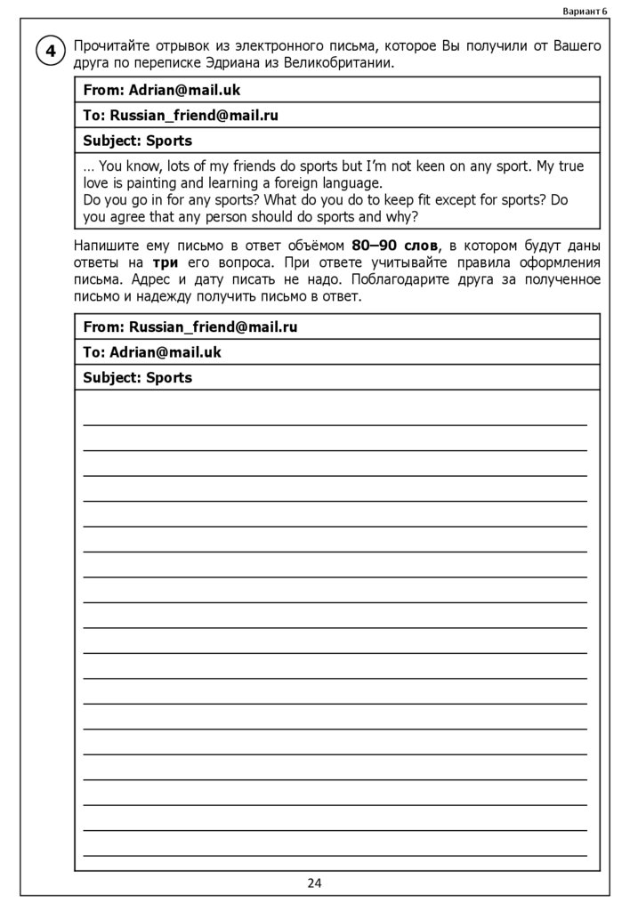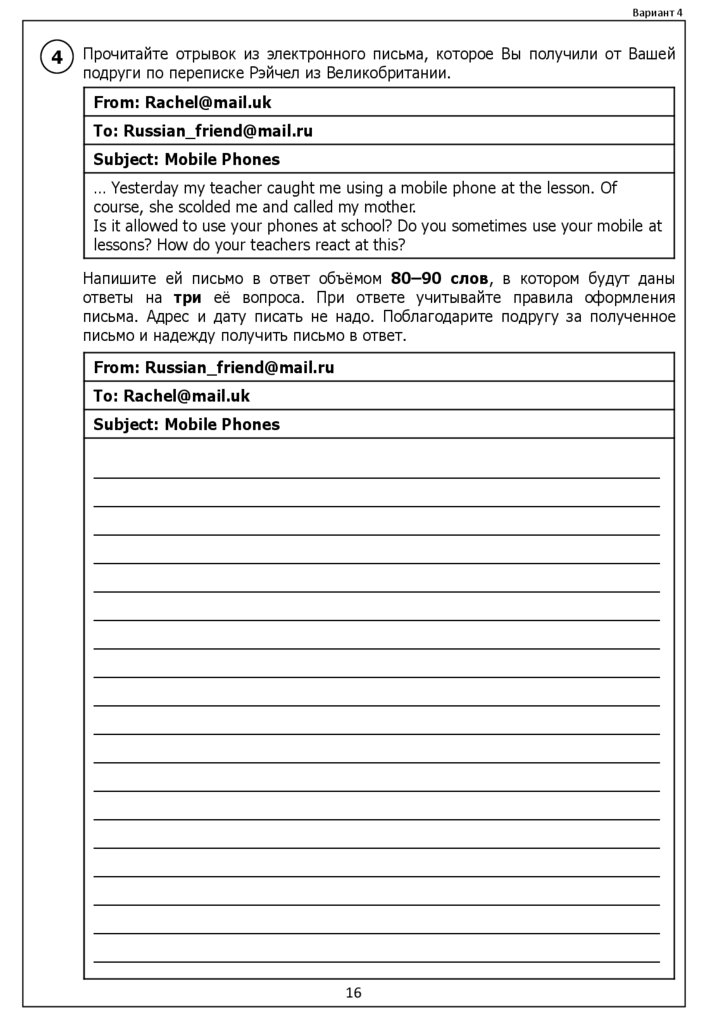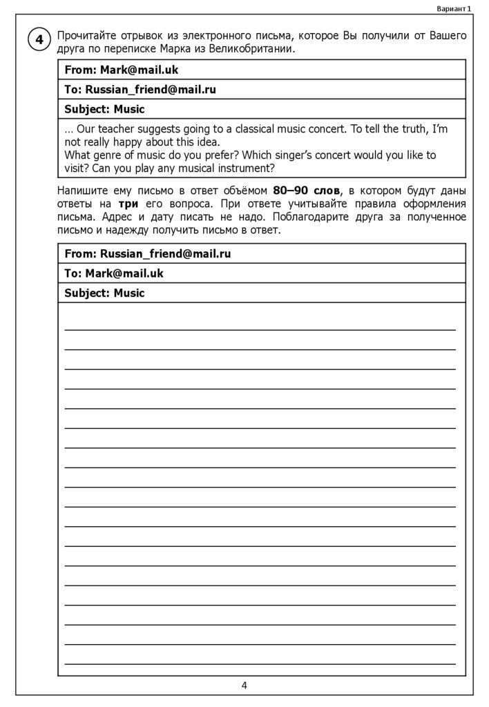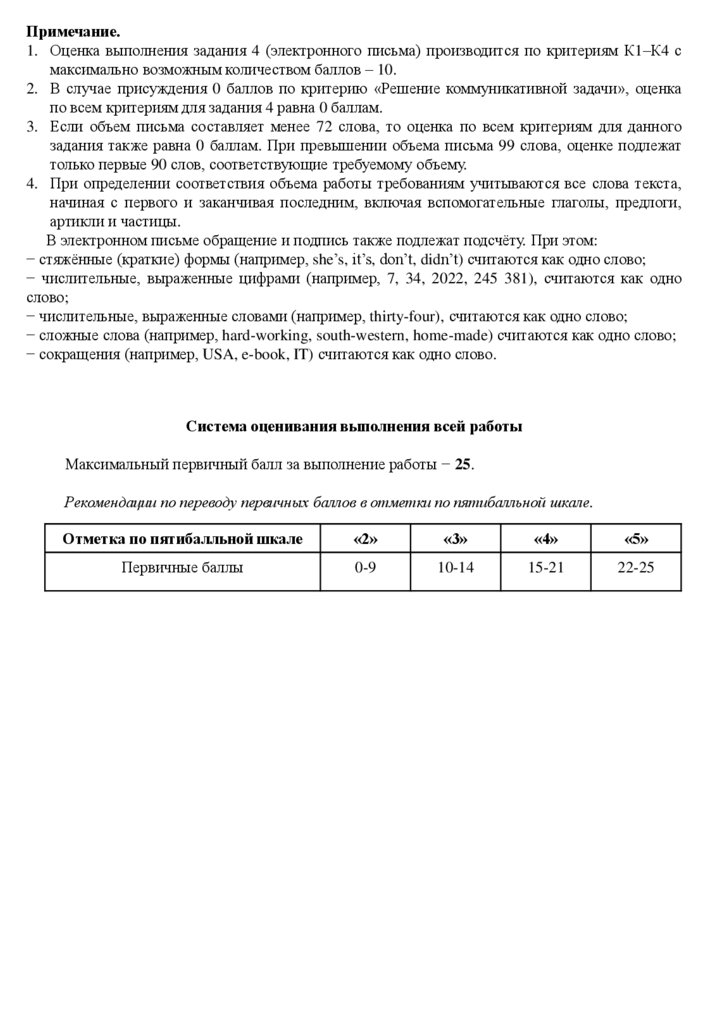 Примечание.1. Оценка выполнения задания 4 (электронного письма) производится по критериям К1–К4 с