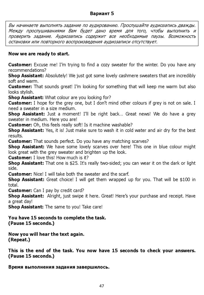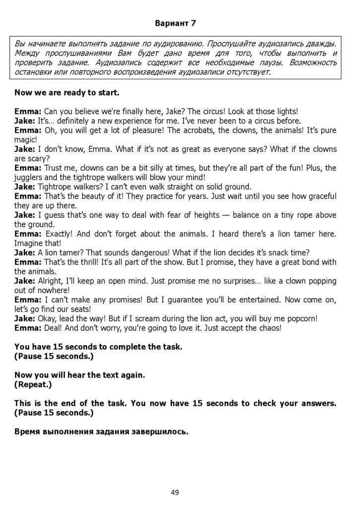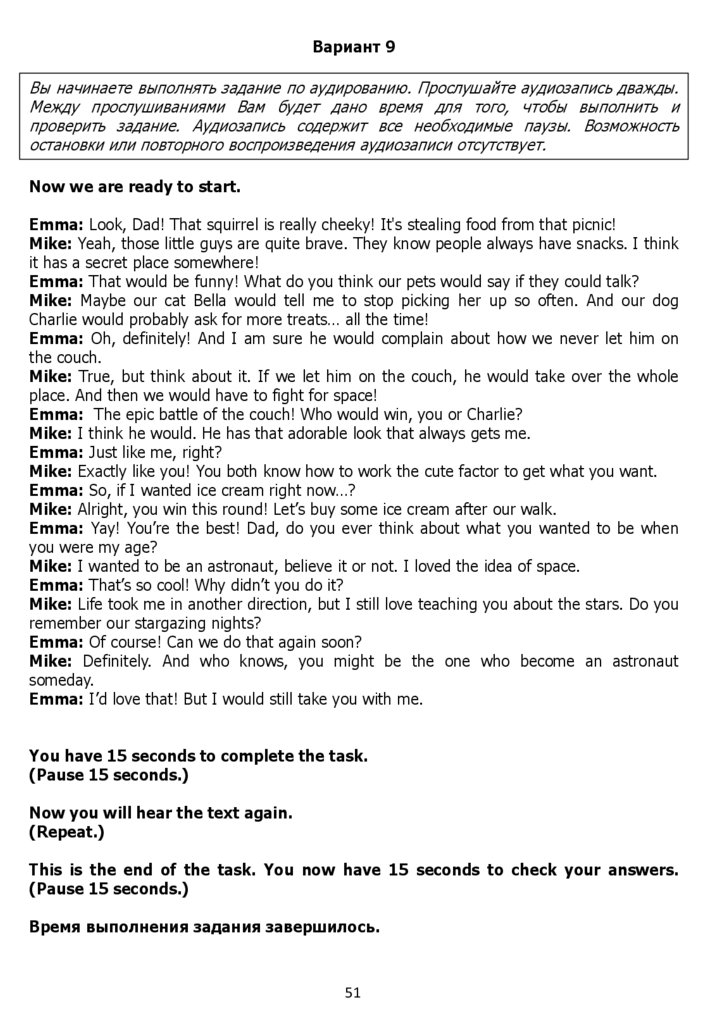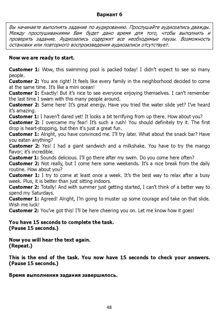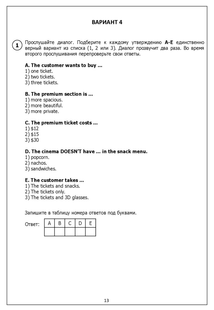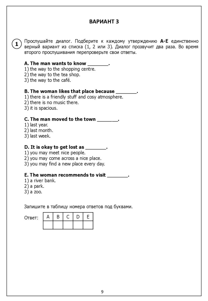 верный вариант из списка (1, 2 или 3). Диалог прозвучит два раза. Во время
