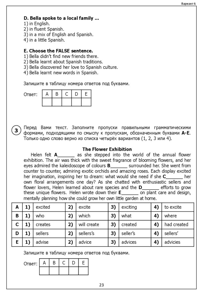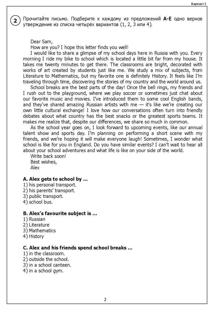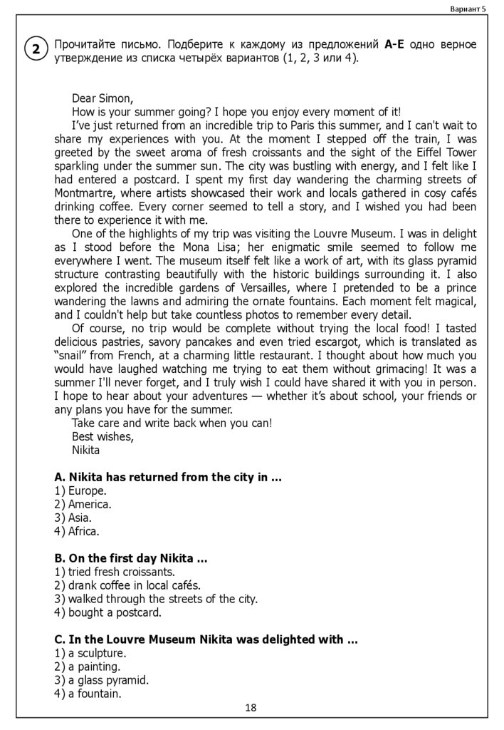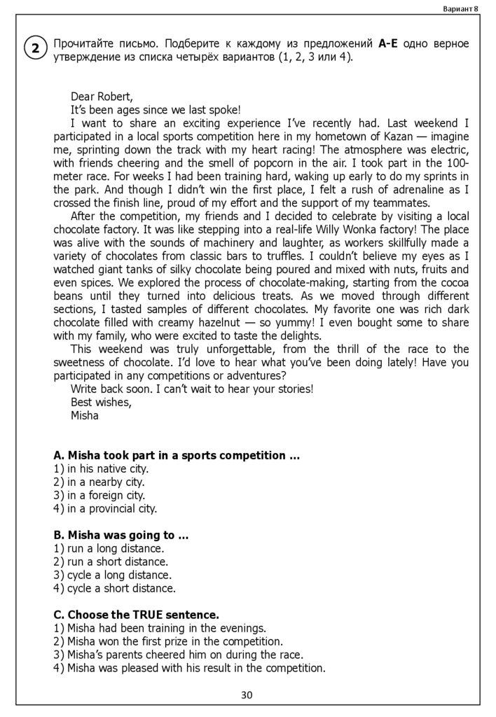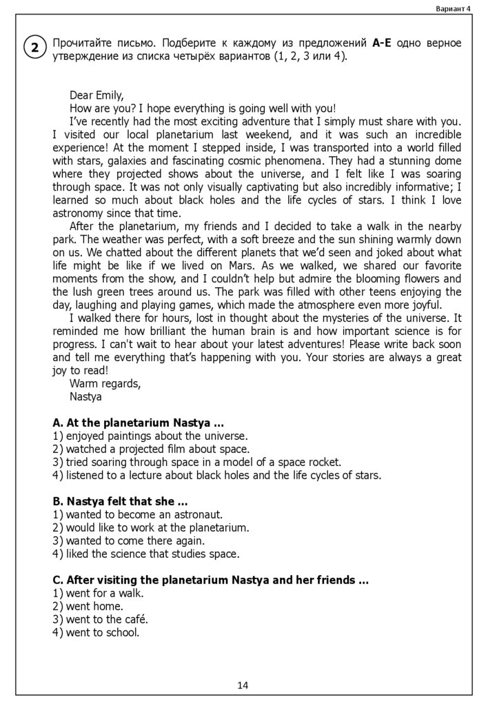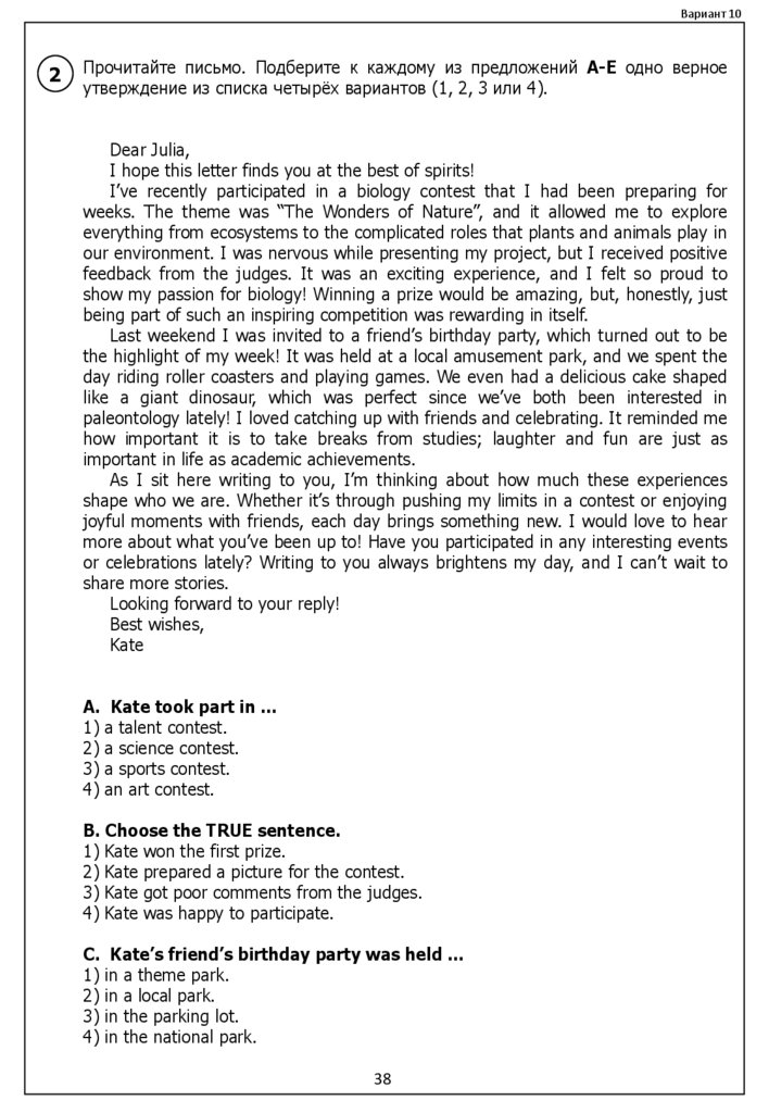 Прочитайте письмо. Подберите к каждому из предложений A-E одно верное