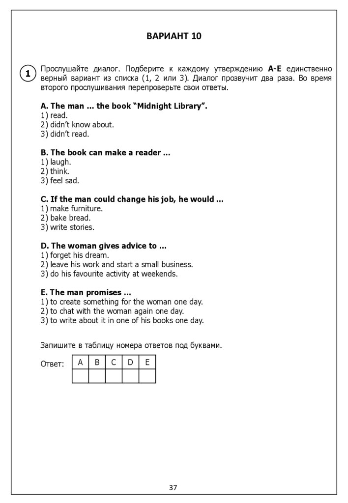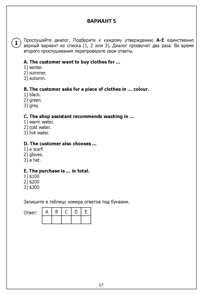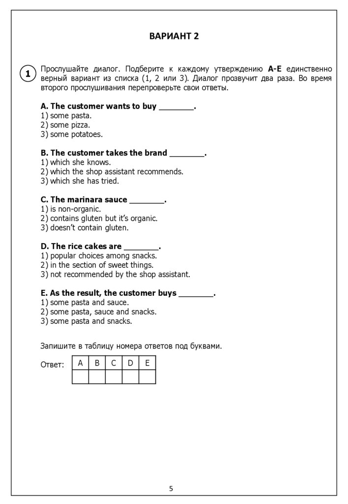 Прослушайте диалог. Подберите к каждому утверждению A-E единственно