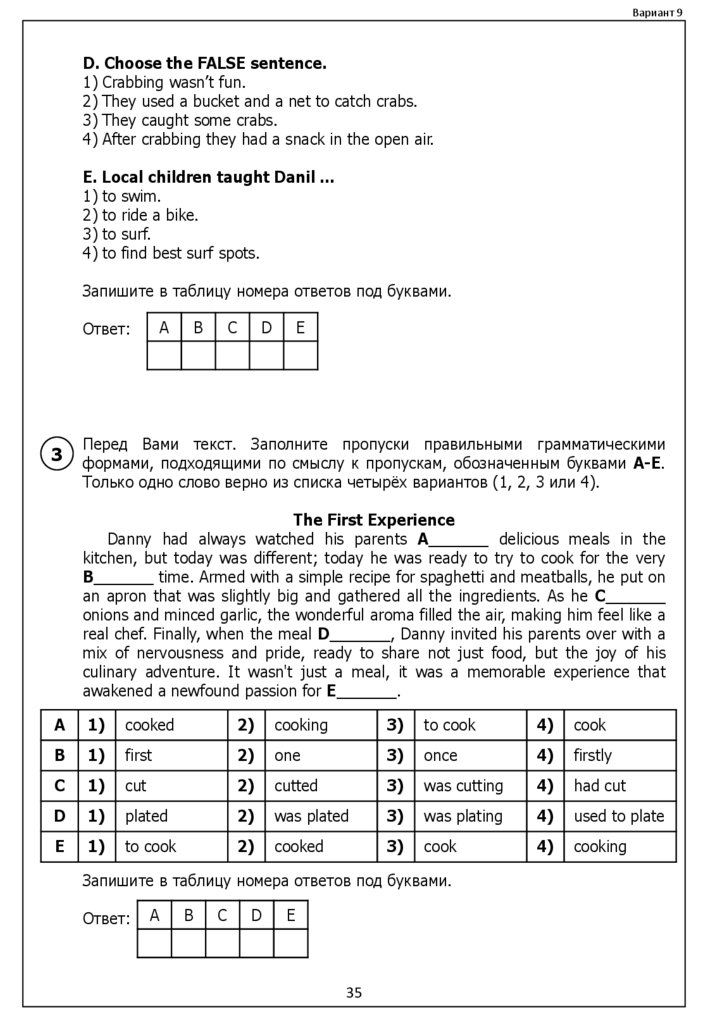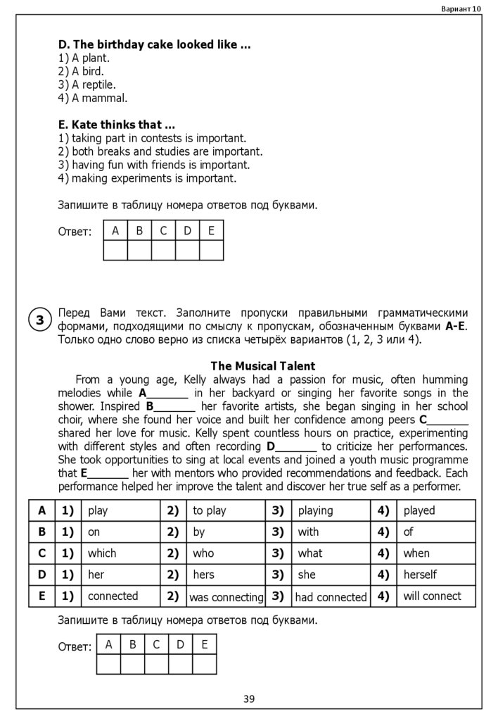 формами, подходящими по смыслу к пропускам, обозначенным буквами A-E.