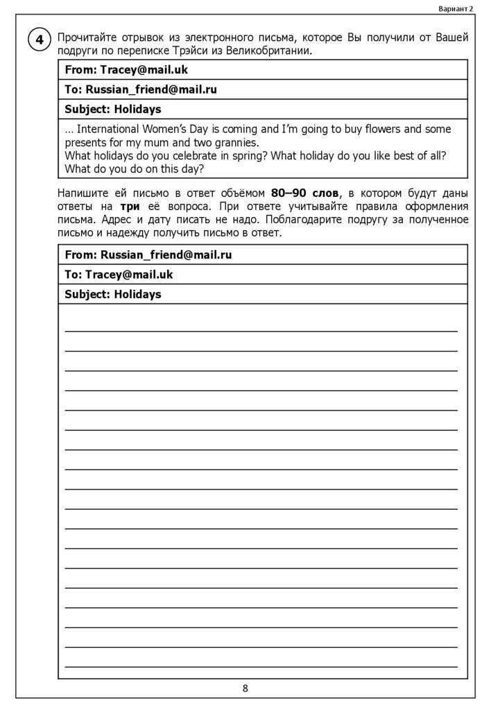 задания также равна 0 баллам. При превышении объема письма 99 слова, оценке подлежат