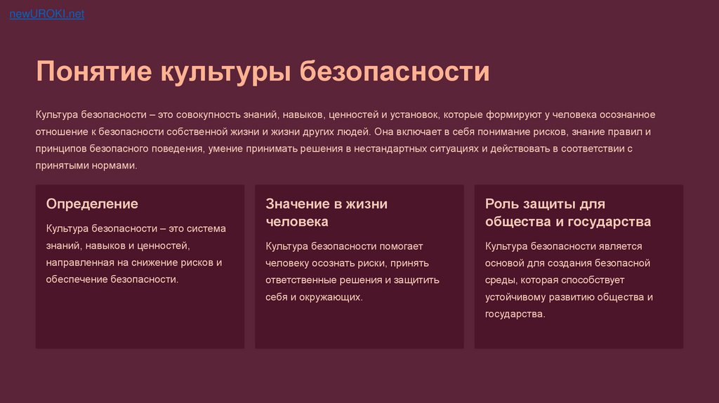 Культура безопасности – это совокупность знаний, навыков, ценностей и установок, которые формируют у человека осознанное