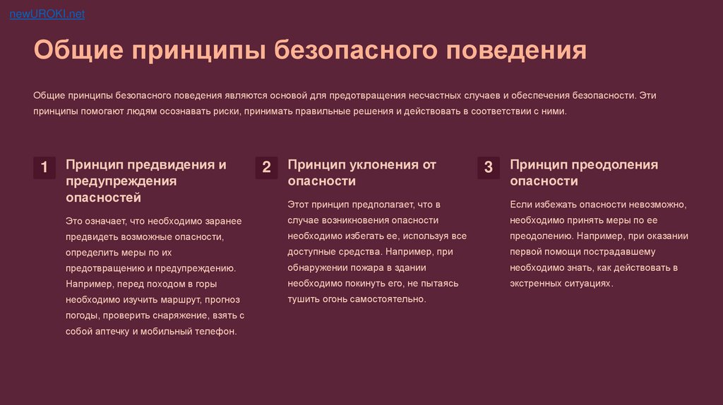 Общие принципы безопасного поведения являются основой для предотвращения несчастных случаев и обеспечения безопасности. Эти