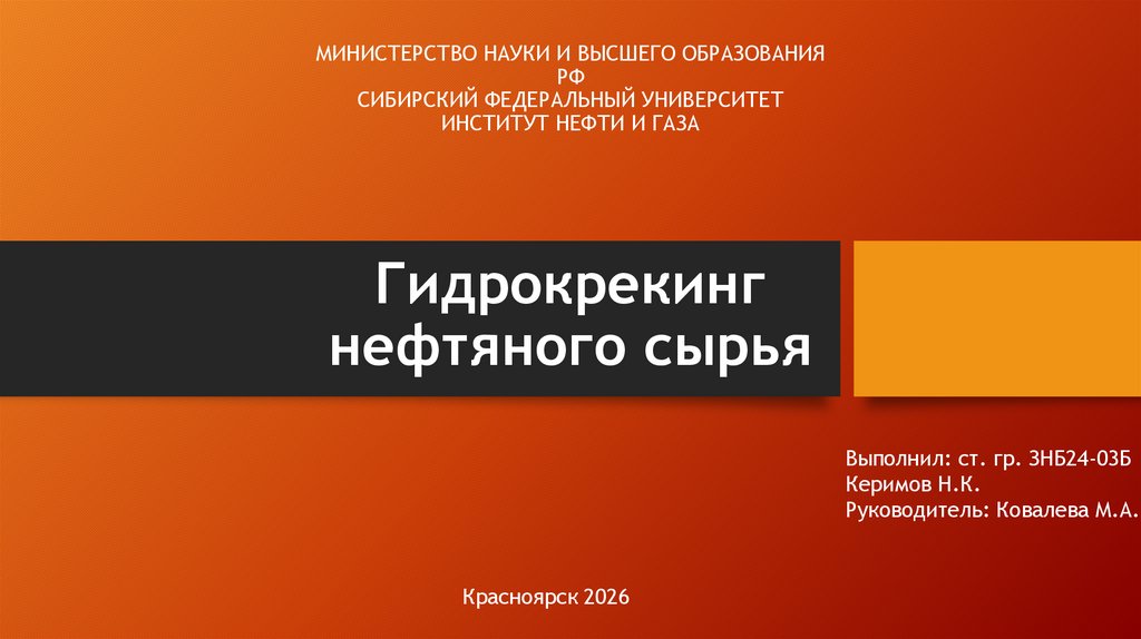 1. Министерство науки и высшего образования РФ Сибирский Федеральный Университет Институт Нефти и Газа