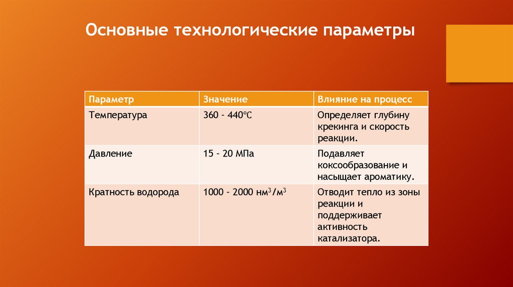 Основные технологические параметрыПараметр