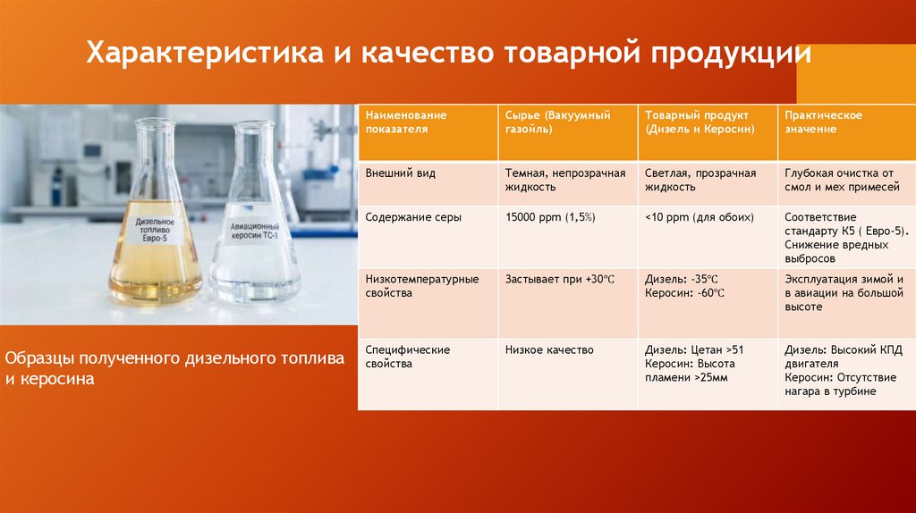Характеристика и качество товарной продукцииОбразцы полученного дизельного топлива
