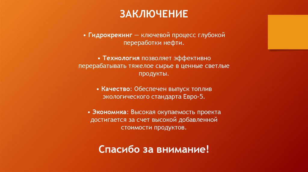 ЗАКЛЮЧЕНИЕ• Гидрокрекинг — ключевой процесс глубокой