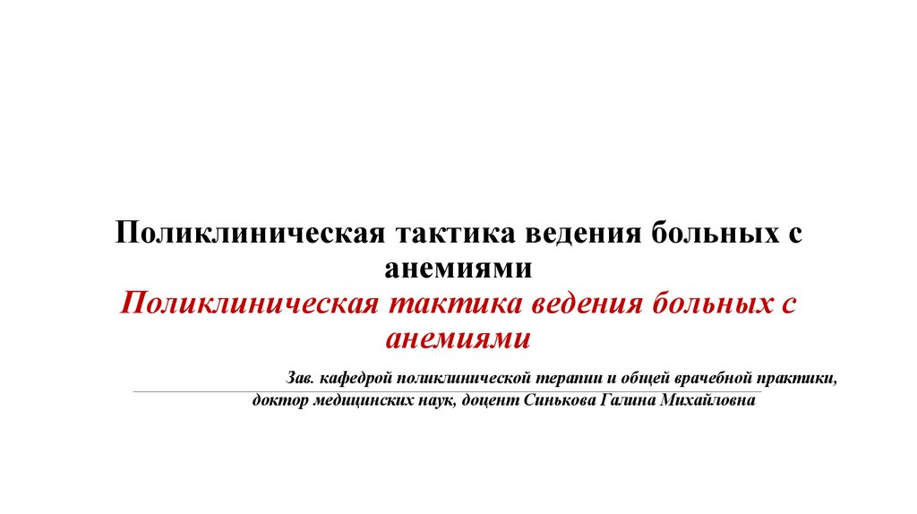 Поликлиническая тактика ведения больных санемиями