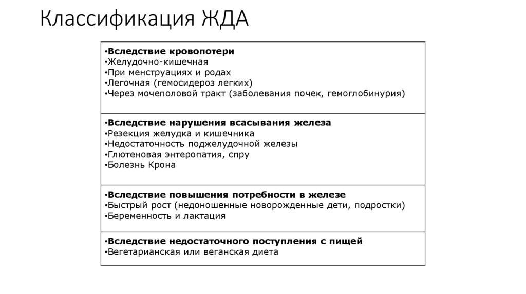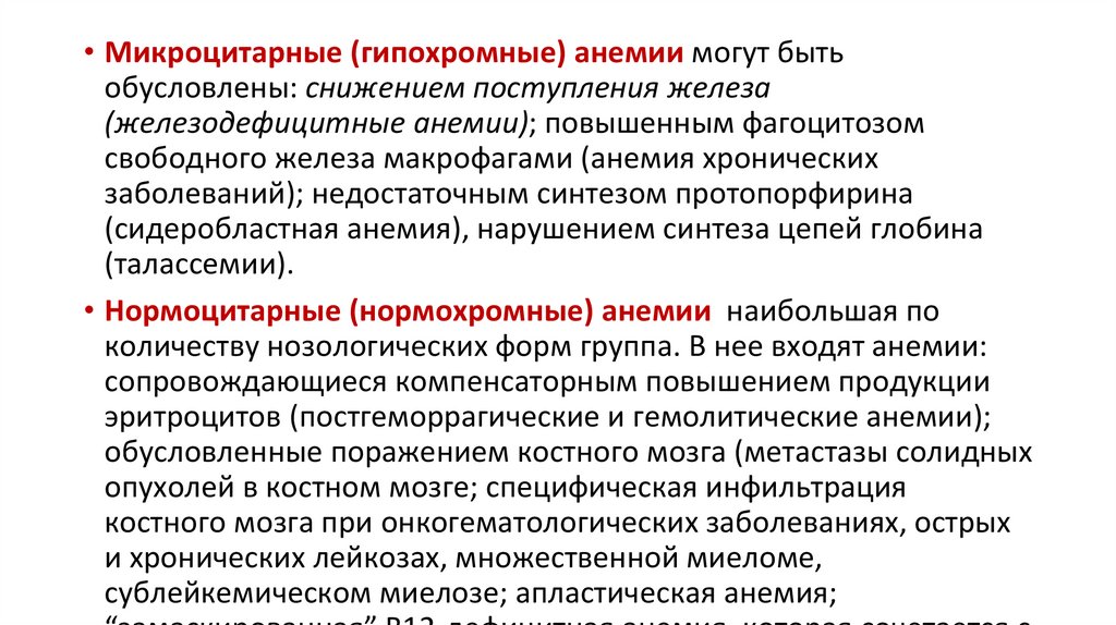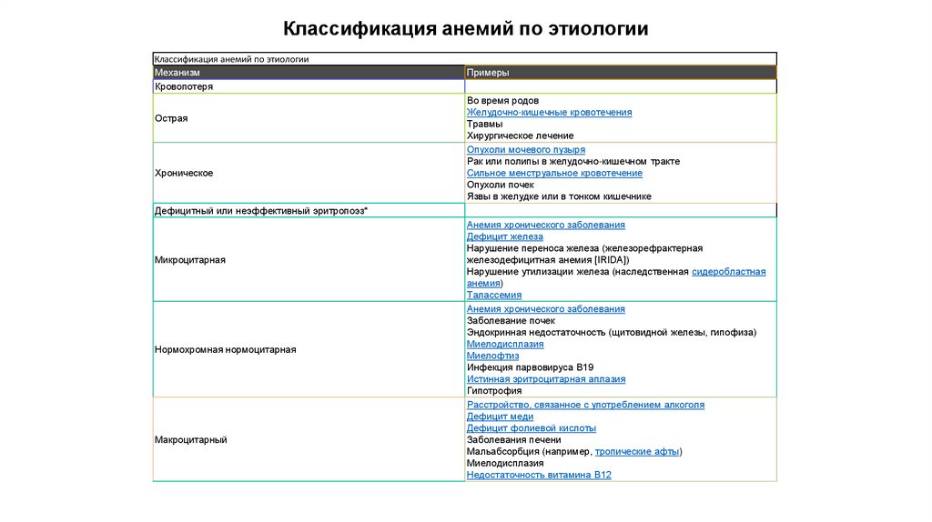 Классификация анемий по этиологииКлассификация анемий по этиологии