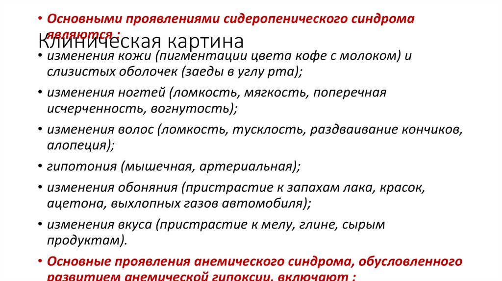 • 1) глубокая анемия с выраженными гипоксическими