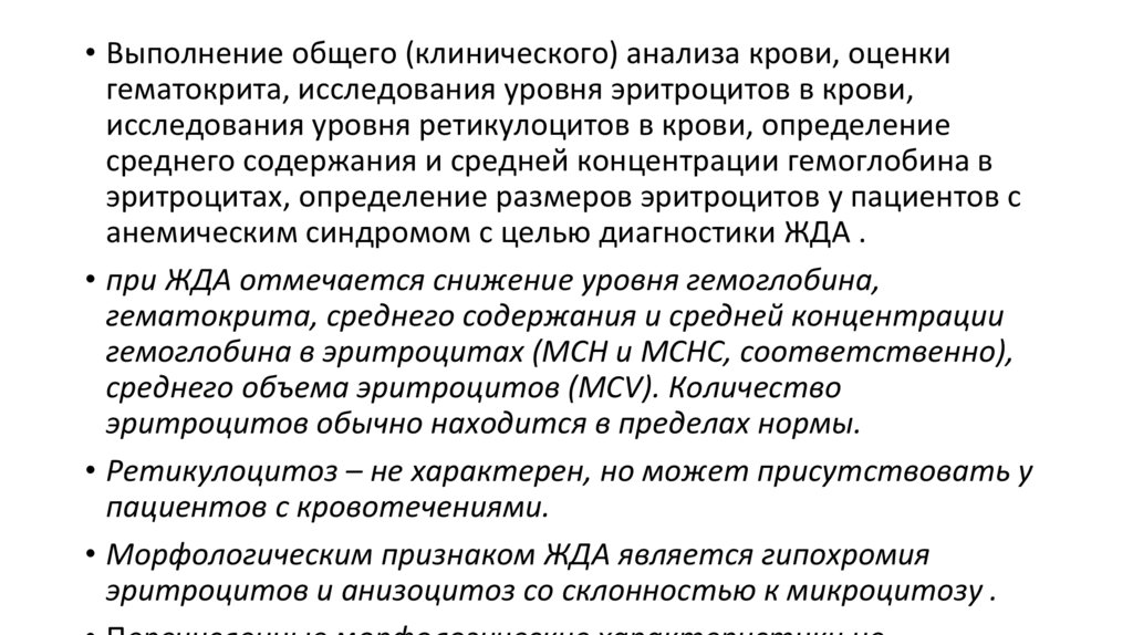 и средней концентрации гемоглобина в эритроцитах, определение размеров эритроцитов у пациентов