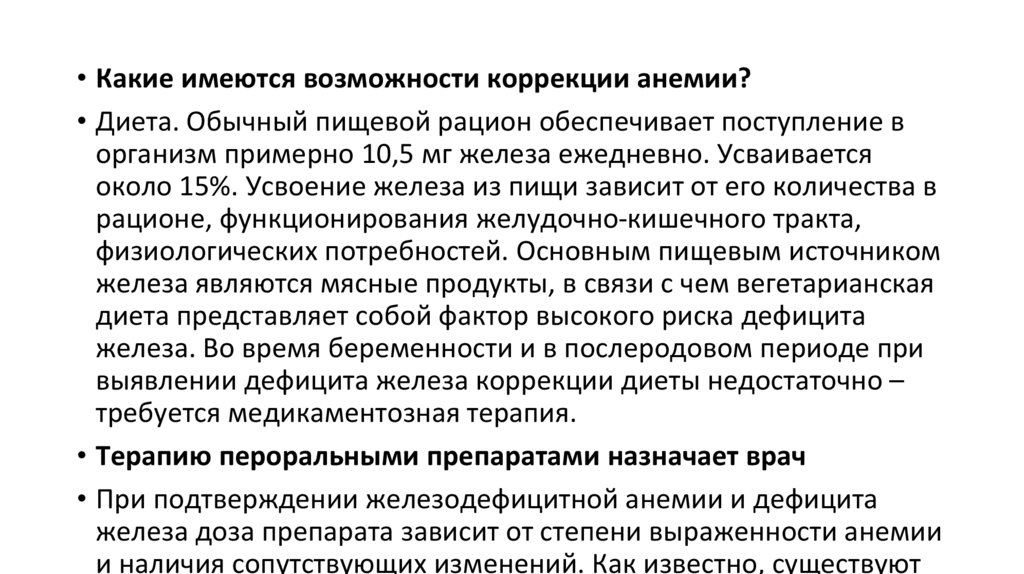 коррекции анемии