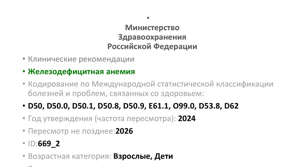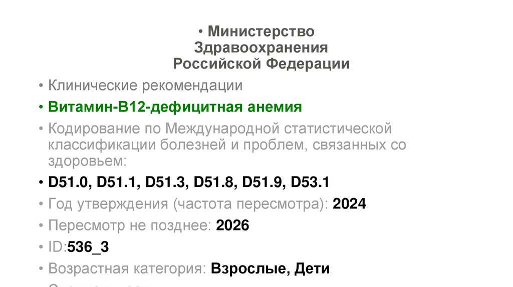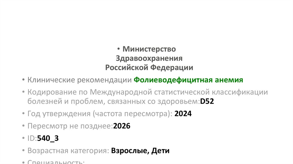 • Клинические рекомендации Фолиеводефицитная анемия